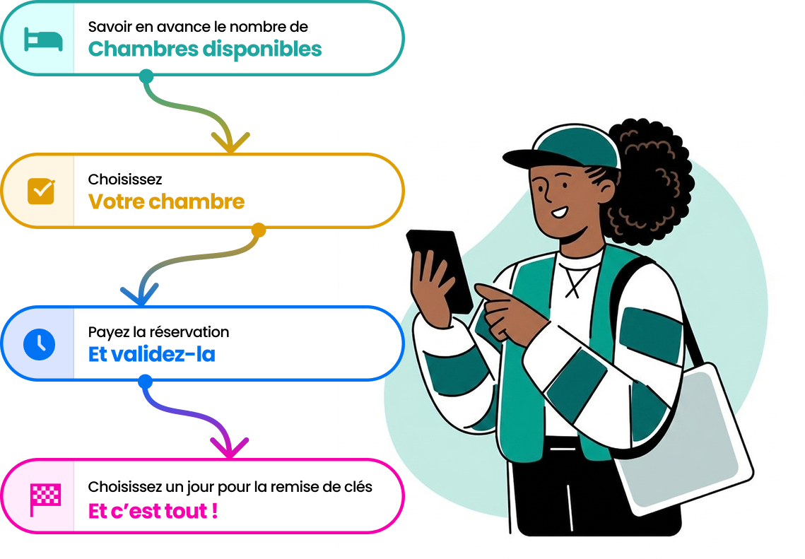 Avec notre système transparent et intuitif, trouvez votre chambre idéale en quelques clics, comparez les options et réservez en toute confiance.